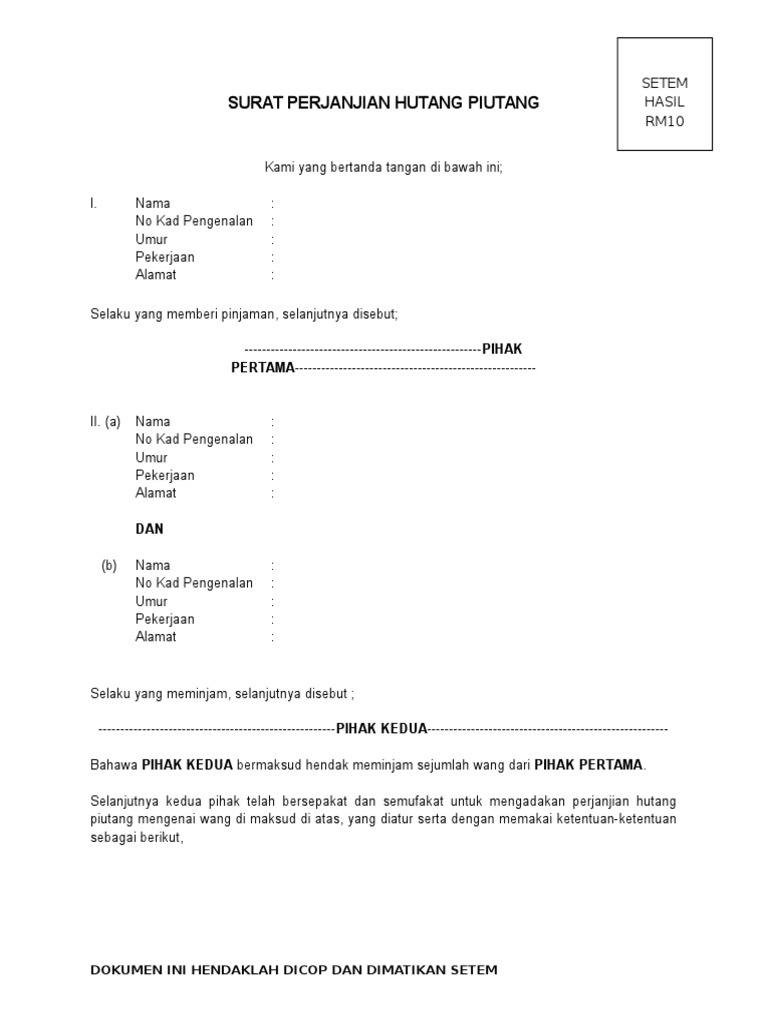 Surat pernyataan kesanggupan merupakan jenis surat formal yang berisi suatu pernyataan akan keadaan atau kondisi yang bahwa, pada tanggal 27 februari 2017 telah meminjam uang dari saudara bagas setiaji dengan nominal sebesar rp 7.500.000. Dimana surat tersebut menjadi penjelas siapa yang meminjam, jumlah yang dipinjam, orang yang meminjami, batas pengembalian bagi anda yang akan melakukan kegiatan peminjaman uang atau pun orang yang meminjami uang, tentunya harus mengerti akan. Sebenarnya surat seperti ini penting dibuat, ketika seseorang akan meminjam uang. We did not find results for: Surat akuan meminjam wang :